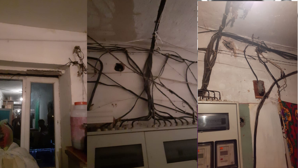 “Hər mərtəbədə 23-24 ailə yaşayır. Hər ailənin bircə otağl var, ailə üzvlərinin sayı 4 nəfərdən 6-7 nəfərədəkdir. Hər mərtəbədə tualet var, hər tualetin çirkab suyu alt mərtəbədəki tualetin tavanından başımıza axır, ona görə də tualetdən istifadə edəndən sonra gərək gedib yuyunasan, ancaq ona da imkan yoxdur, çünki hər mərtəbədəki hamam otaqları da çirkab su içindədir. İşıq xətləri sarmaşıq kimi bir-birinə elə dolaşıb ki… Binada qaz yoxdur deyə, soyuqlar düşəndə hamı elektrik cihazlarından istifadə edir. Qəzalı xətlərdə qısaqapanmalar baş verir, bu da yanğına səbəb olur. İndiyədək binada bir neçə dəfə yanğın olub, onlarla insan qışın soyuğunda çöldə gecəməli olub”, – sakinlər deyir.