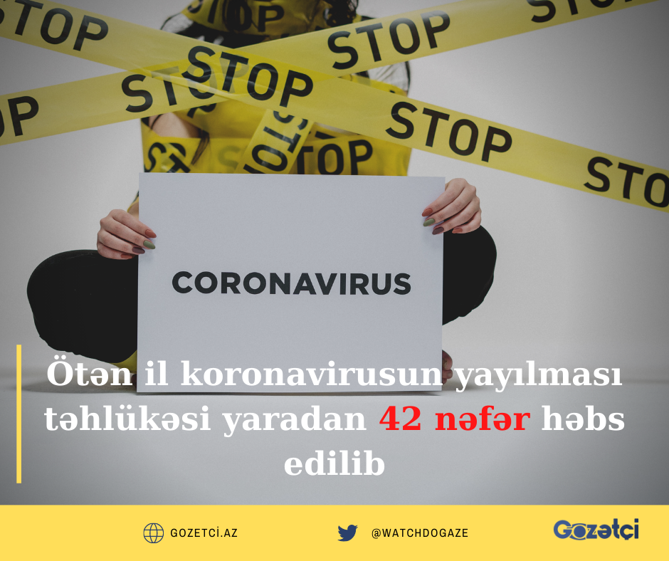 Karantin rejimini pozmaqla xəstəliklərin yayılması üçün real təhlükə yaratma faktlarına görə 696 cinayət işi başlanılaraq 42 nəfər barəsində həbs, 4 nəfər barəsində polisin nəzarəti altına vermə qətimkan tədbiri seçilib.