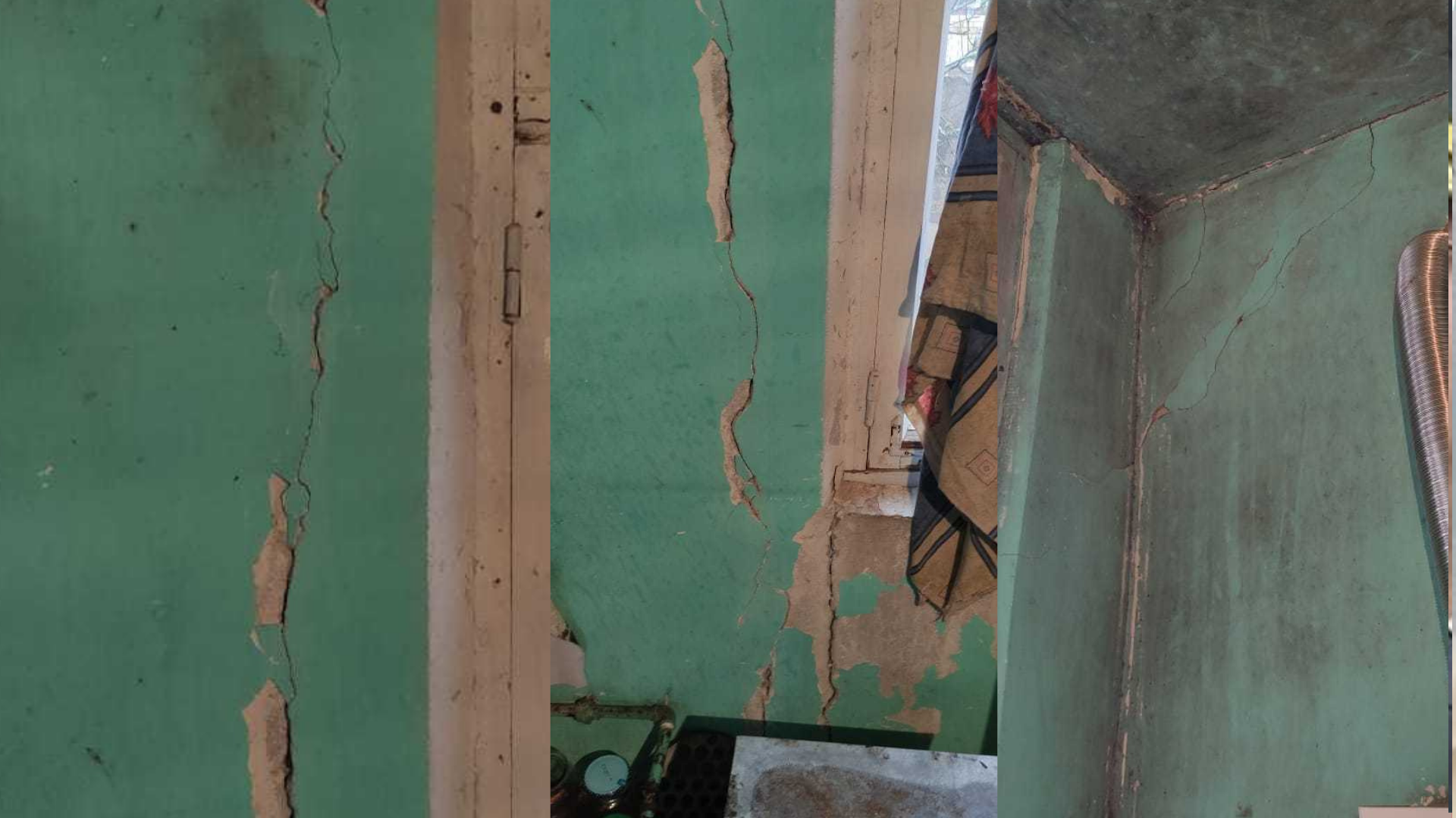 Zərərçəkən Meydan TV-yə deyir ki, evinin əlli metr yaxınlığına düşən qrad mərmisi pəncərələri çərçivədən çıxarıb, şüşələri qırıb, mətbəxin divarlarında çatlar yaradıb: