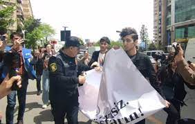 Gənclər Təhsil Nazirliyini fəaliyyətsizlikdə ittiham ediblər və üzərində “Çayxana deyilsiniz, fəaliyyət göstərin!” yazılan plakat açıblar.