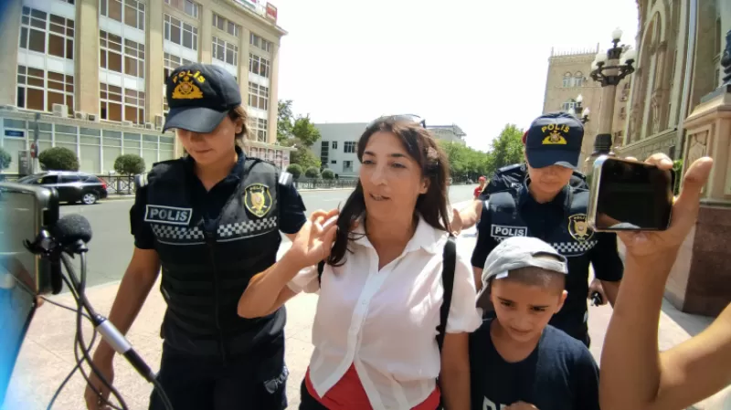 Qadın qeyd edib ki, həyat yoldaşı həbs olunandan sonra ailə başsız qalıb və o 3 uşağı təkbaşına dolandıra bilmir. Uşaqlardan biri ciddi sinir sistemi xəstəliyindən əziyyət çəkir. Həmin səkkizyaşlı uşağı özü ilə aksiyaya gətirib.