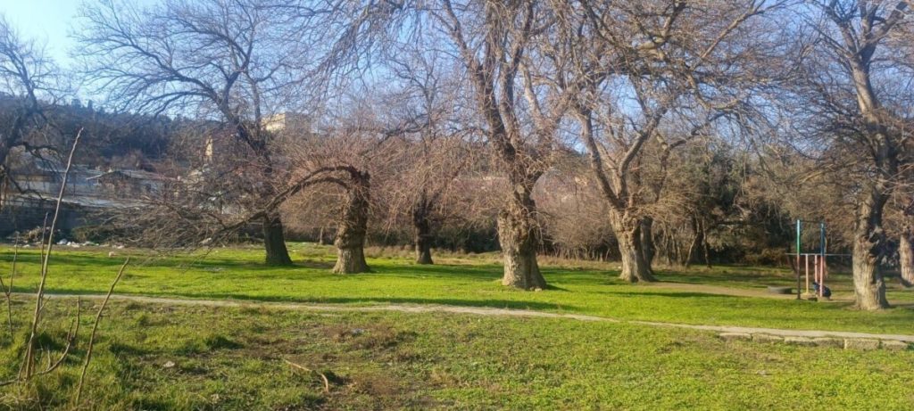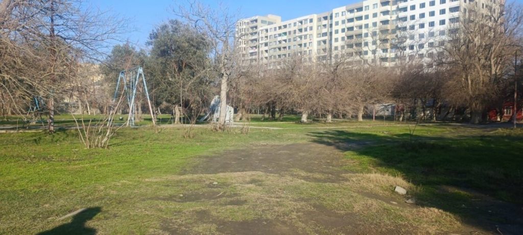 Parkda uşaqlar futbol oynayırlar. Sakinlər deyirlər ki, həmin ərazidə futbol meydançası da olub. Amma meydançanın dəmir qapıları sökülüb və yoxa çıxıb. Parkdakı hovuzun içərisi də boş qalıb, sonuncu dəfə yağan qardan qalan suyun üzərində boş butulkalar üzür.