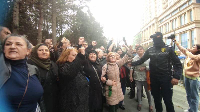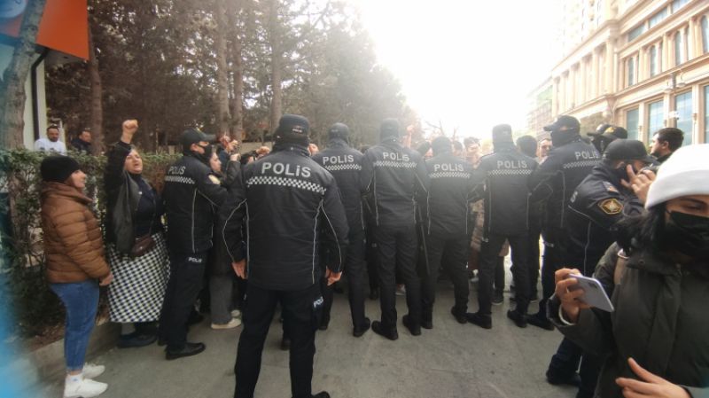 Etirazçılar “Zamin Salayevə azadlıq!”, “Siyasi məhbuslara azadlıq!” şüarlarını səsləndiriblər: Polis aksiya iştirakçılarının Ədliyyə Nazirliyinin binasına yaxınlaşmasına icazə verməyib və onları saxlamağa başlayıb. AXCP-dən verilən məlumata görə, Ümumilikdə 50-dən çox adam saxlanılıb və Yasamal rayon polis şöbəsinə aparılıb, Azərbaycan Xalq Cəbhəsi Partiyasından bildiriblər.