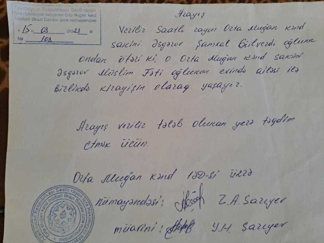 Bunu Meydan TV-yə Saatlının Orta Muğan kənd sakini Əsgərov Şamxal Gülverdi oğlu deyir.