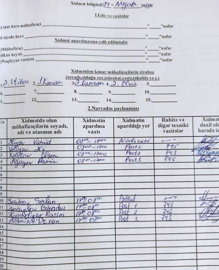 Şikayətçi deyir ki, onlara tələblər qoyulub. Ratsiyada on beş dəqiqədən bir məruzə olunmasını istəyiblər: